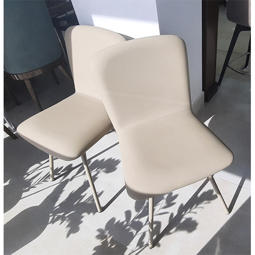 Основа стула — прочный металлический каркас с четырьмя трубчатыми ножками, дополненный декоративными металлическими деталями и многоуровневой конструкцией, что придает стулу лёгкий, но устойчивый вид. Мягкие сиденье и спинка обиты экокожей. Уход за стулом не требует усилий: для поддержания чистоты достаточно протереть поверхность влажной салфеткой.