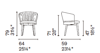 Vanilla - это стул, пропорции и уровень комфорта которого напоминают обеденные кресла. Его отличительной особенностью, вдохновленной миром моды, является ткань с рюшами и горизонтальный элемент, который опоясывает спинку подобно поясу. Как деревянные, так и металлические ножки подчеркивают присущую ему элегантность.