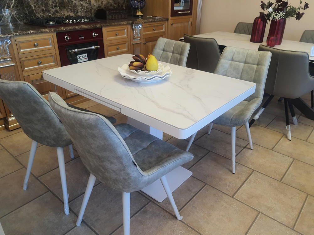 Главная особенность — центральная вставка длиной 40 см с удобным раскладным механизмом. Это позволяет легко увеличивать полезную площадь стола, адаптируя его под разные ситуации: от повседневного использования до приёма гостей.