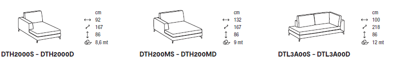 Диван имеет анатомичную высоту 86 см, есть готовые варианты прямого дивана, углового элемента, пуфа и шезлонга. Есть возможность использовать элементы с внедрением деревянной полочки в шпоне, которая с успехом заменяет журнальный столик. Для обивки используются все отделочные материалы, включая ткани в большом ассортименте, кожи различных категорий и искусственную замшу bedford.