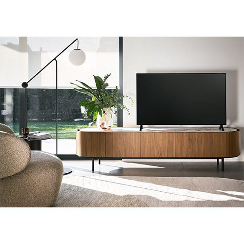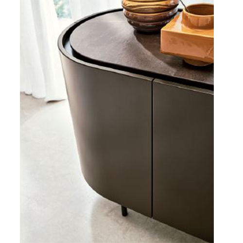 Lake - это коллекция тумб с мягкими изогнутыми линиями. Овальная форма подчеркнута утопленной столешницей, которая немного меньше по периметру, что создает полезное пространство для открывания дверей и выдвижных ящиков. Отделанный со всех сторон и лишенный острых краев, сервант идеально подходит для размещения в любом месте гостиной.