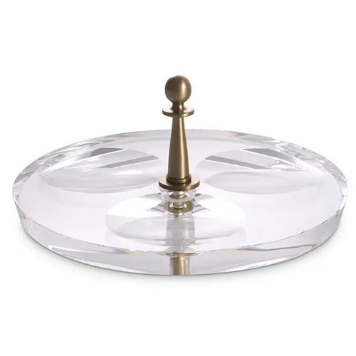 Поднос Krone из цельного прозрачного стекла с тремя отделениями-чашами дополнено изящной подъёмной ручкой из латуни с эффектом состаренной поверхности и декоративным набалдашником
