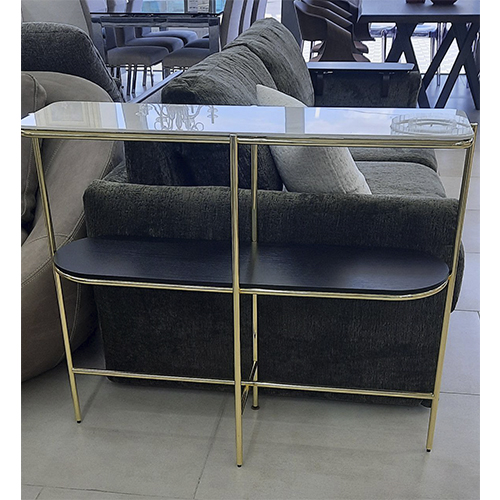 Размеры: 100 х 30 х H85 см; материал: металл, закаленное стекло топ – стекло или керамика, полка – стекло или дерево.